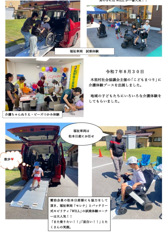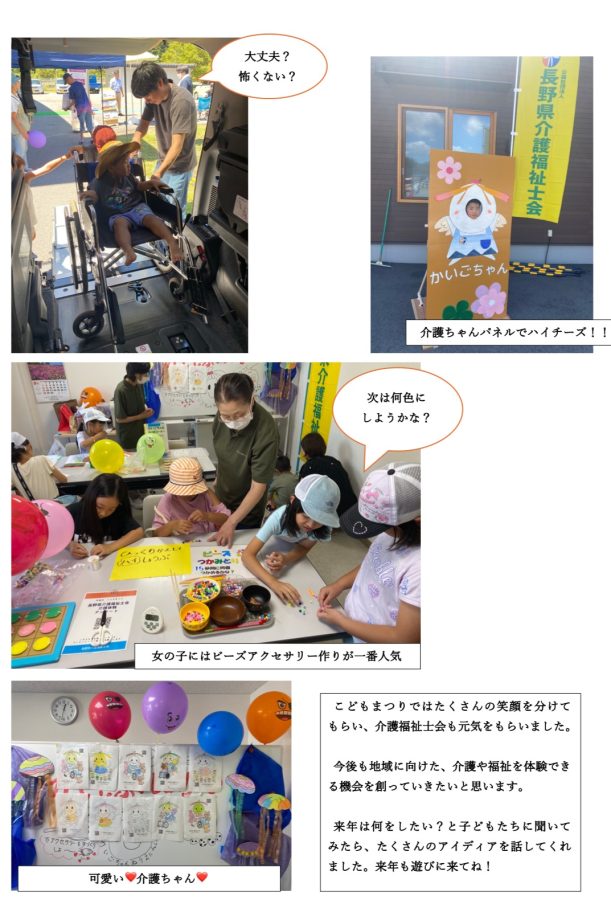 8月31日 木祖村で開催された木祖村こども祭りに 介護福祉士会としてブースを出しました。