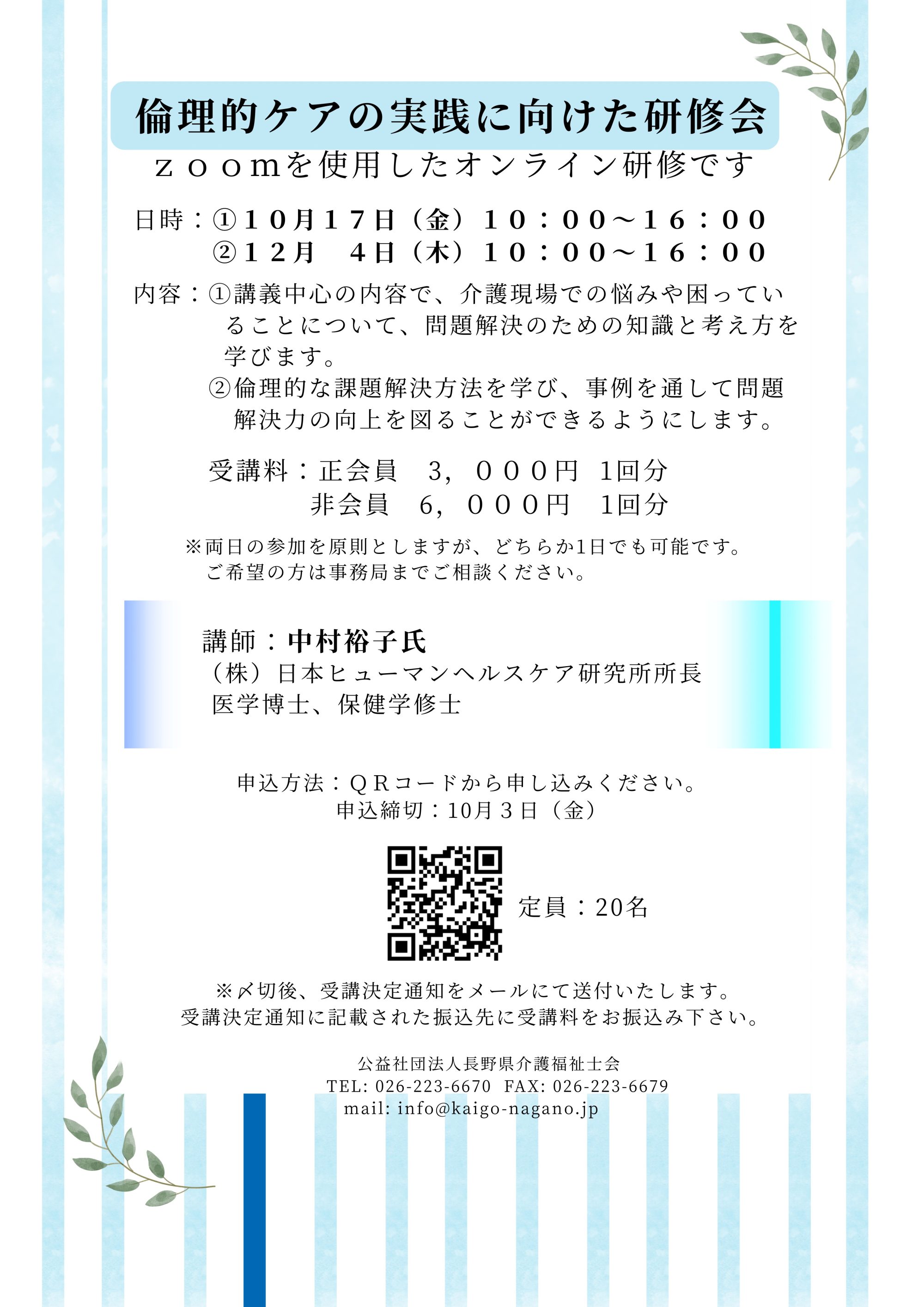 費 用 | 介護福祉士会会員6,000円(2回分) 非会員12,000円(2回分) |