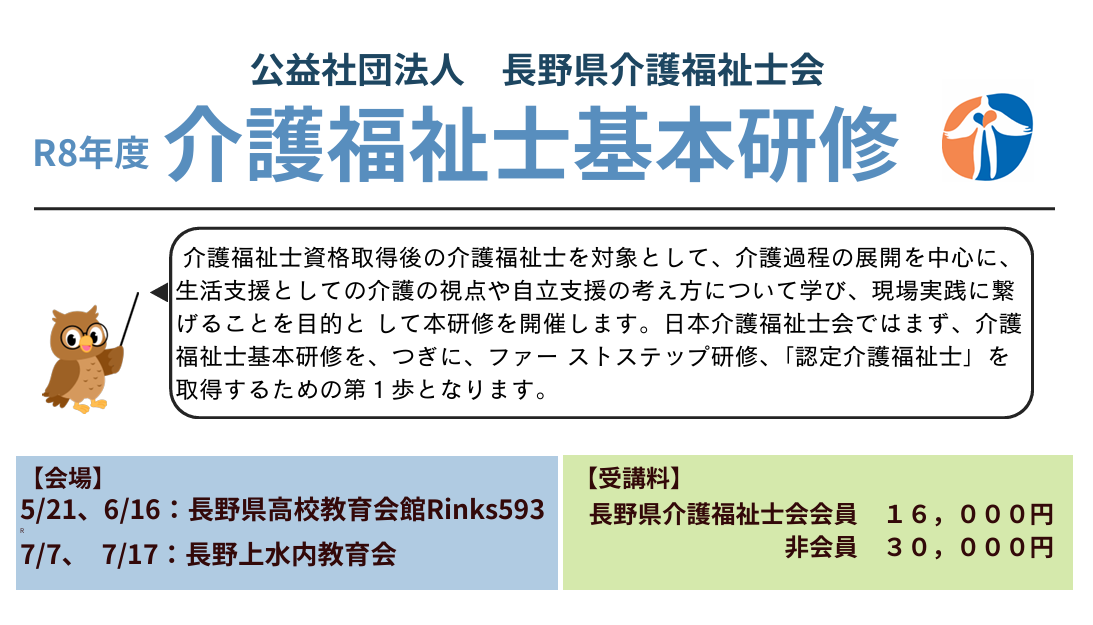 | 費 用 | 長野県介護福祉士会会員:16,000円 非会員:30,000円 |